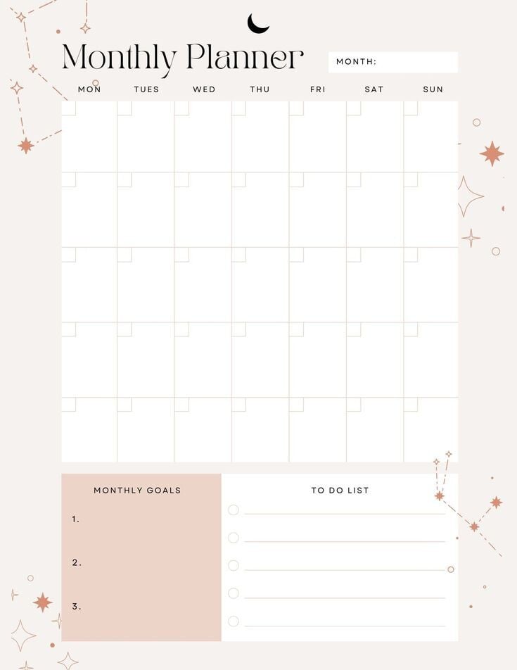 Monthly Planners are a simple way to stay on task and prioritize. This planner also includes a \"Monthly Goal's\" & \"To Do List\" section. NOTE: Nothing will be mailed to you, this is a digital download! Your purchase includes one downloadable file. Please don't hesitate to reach out if you have any questions regarding your digital download